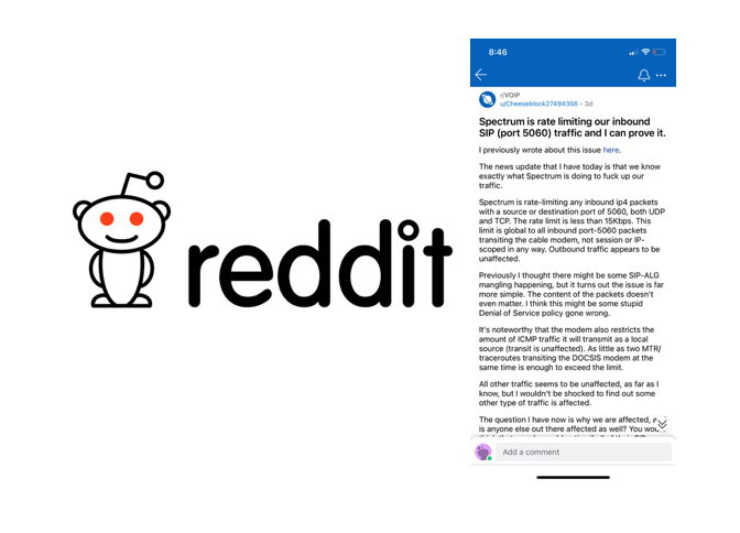 Network engineer and Reddittor Cheeseblock27494356 recently posted about problems he has encountered with VoIP quality of service when using Spectrum internet, and specifically DOCSIS modem models Sercomm ES2251 and Sagemcom RAC2V1S. The post was made on the VoIP...