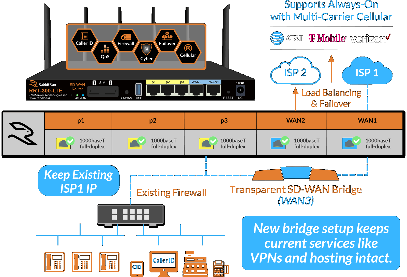 🔹 EasyEdge transparently bridges existing ISP connections for SD-WAN