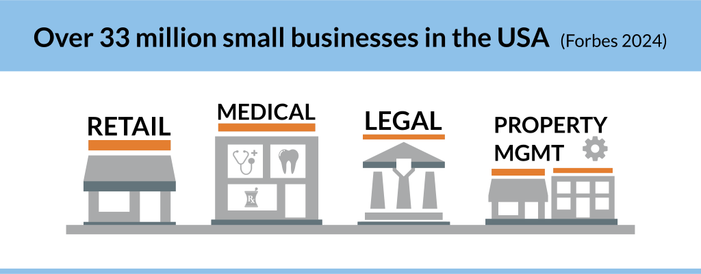 According to a recent Forbes article from Jan 31, 2024 titled “Small Business Statistics Of 2024”, there are over 33 million businesses in the United States, making up 99.9% of all U.S. businesses.